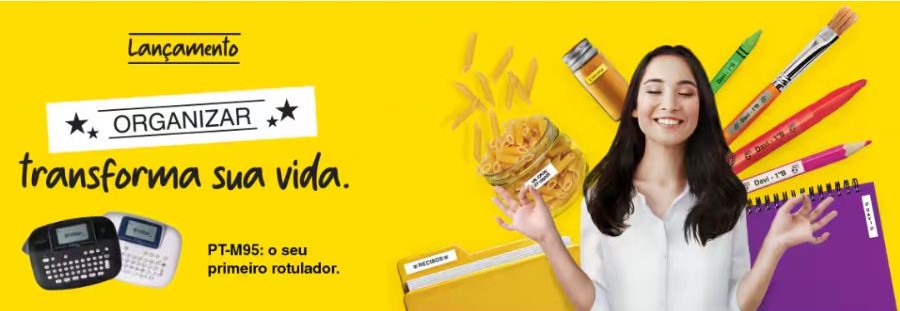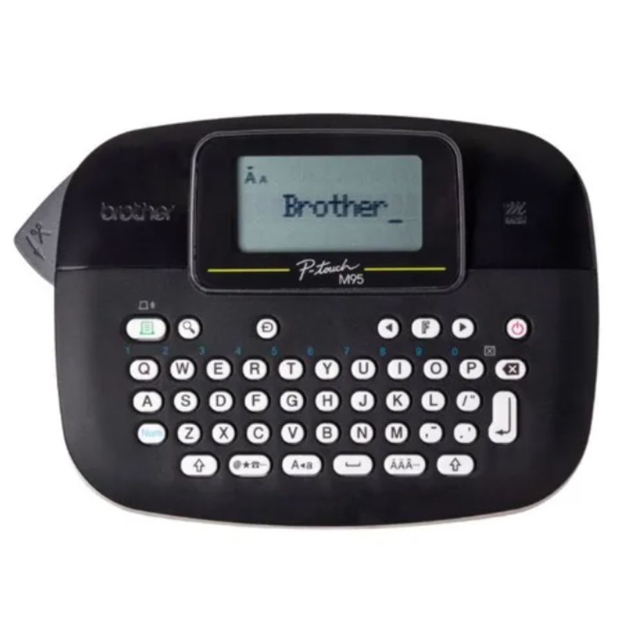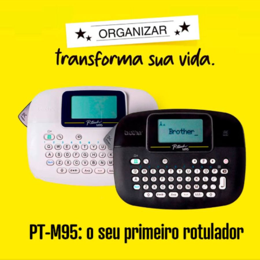 Personalize a identificação de seus materiais escolares, cozinha, quartos e muito mais com mais de 1000 combinações diferentes. O PT-M95BK é um rotulador eletrônico portátil elegante e moderno que utiliza fitas "M" não laminadas de 9 e 12 mm de largura.